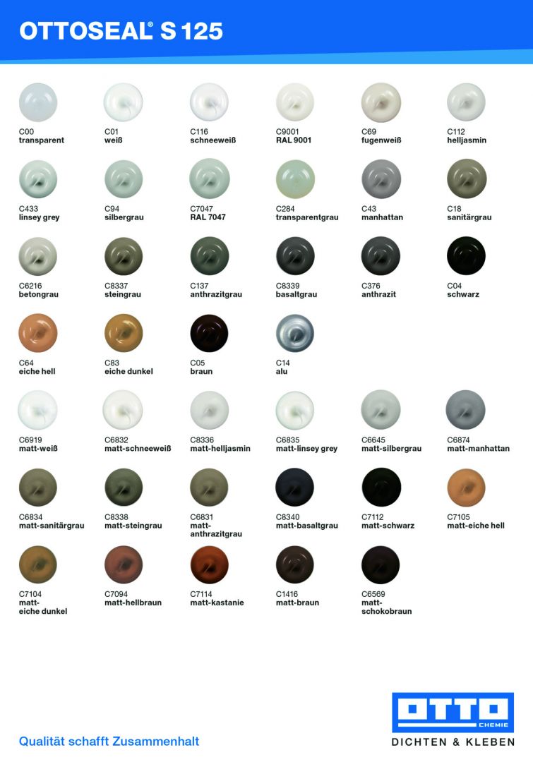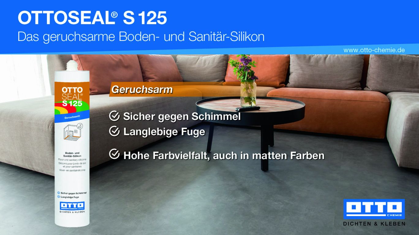 Gulv- og sanitetssilikone Ottoseal S125 er en neutralt hærdende 1-komponent silikonefugemasse på basis af alkoxy