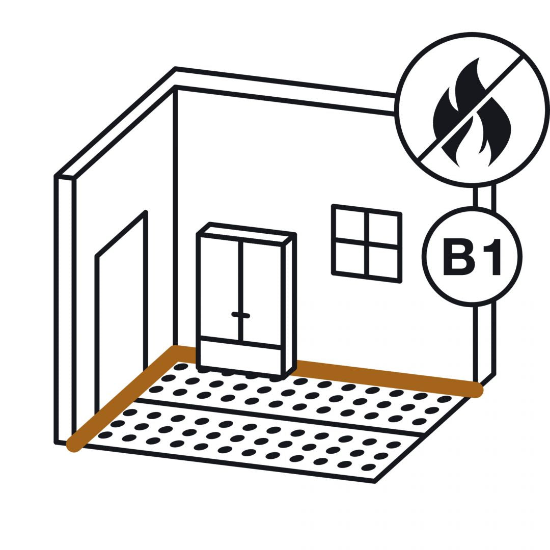 - Næppe brandfarligt - byggemateriale klasse B1 i henhold til DIN 4102 og i henhold til DIN EN ISO 4589 Til særlige brandbeskyttelseskrav