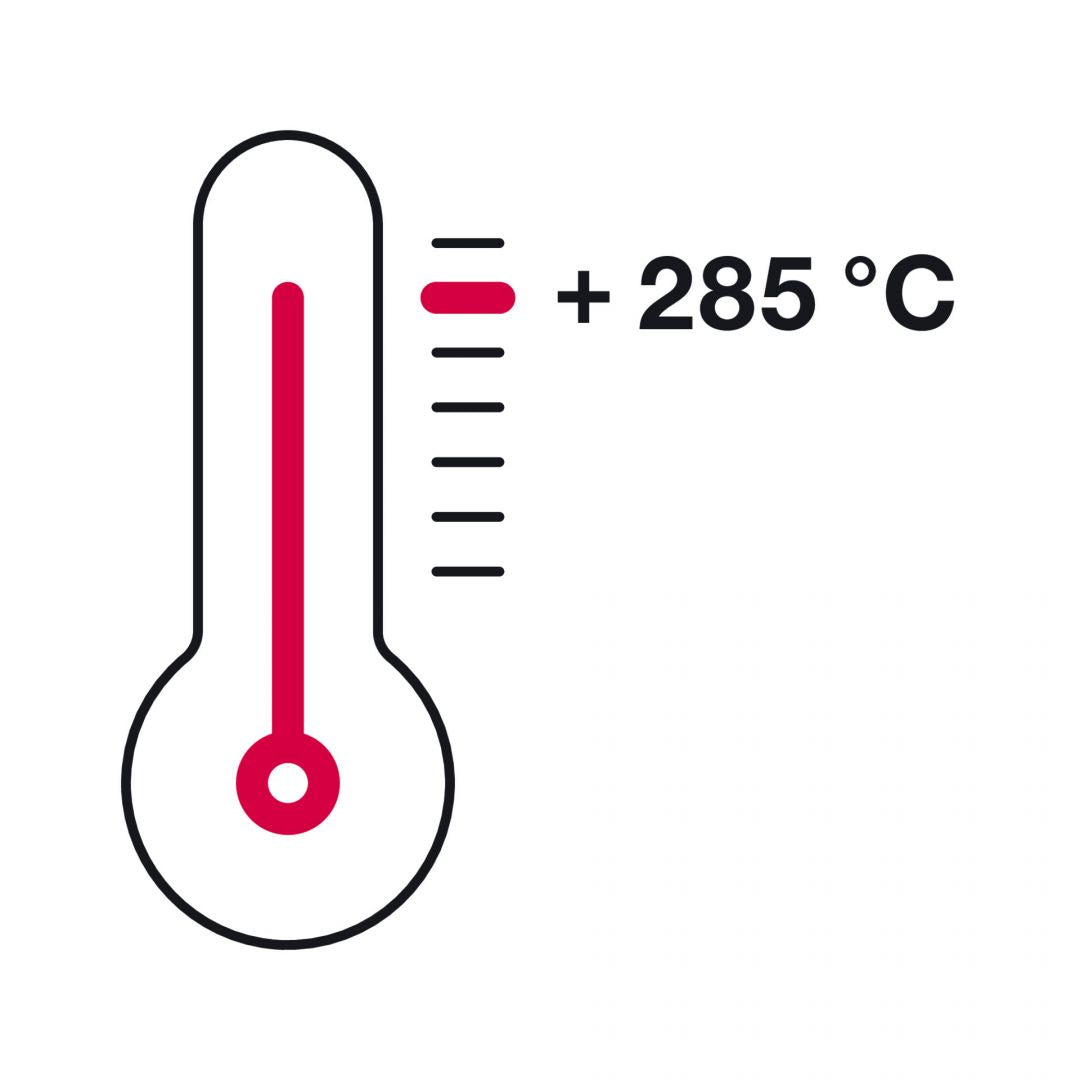 - Høj temperaturbestandighed op til +285 °C Kan bruges til specielle termiske krav