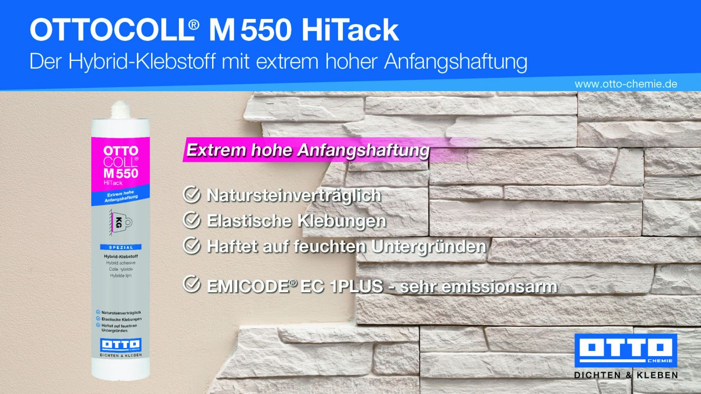 Montagelim Ottocoll HiTack M550 er en 1-komponent lim på basis af silanerminerede Polymere (Hybrid)