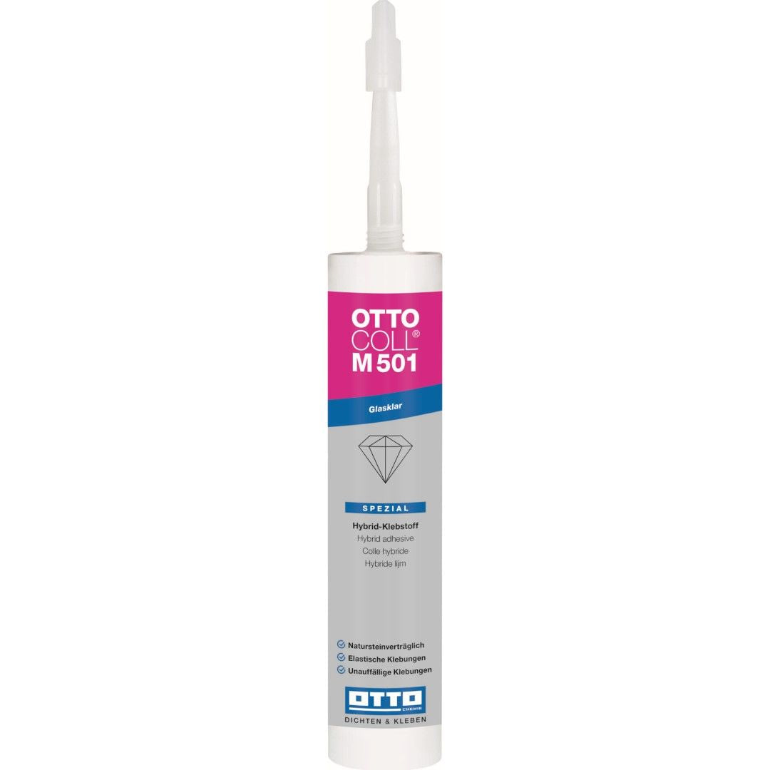 Den krystalklare hybridklæber OTTOCOLL® M 501 er førstevalg til alle bindinger, der skal være så usynlige som muligt efter hærdning. Den er velegnet til mange elastiske bindinger indendørs og udendørs, såsom limning og samling af træ, træbaserede materialer, metaller, plast og mineralske underlag. Derudover er OTTOCOLL® M 501 kompatibel med natursten.Anvendelsesområder